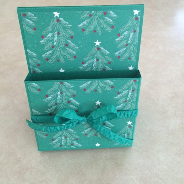Found a wonderful holder on Pinterest from Ann's Happy Stampers and adapted instructions to use 8.5"x11" cardstock. Gave as door prizes at my Christmas Party, as Christmas gifts with A2 sized cards. Having a class next month to create more. So handy to hold our Dimensionals, or Rhinestones and Pearls, or doilies.